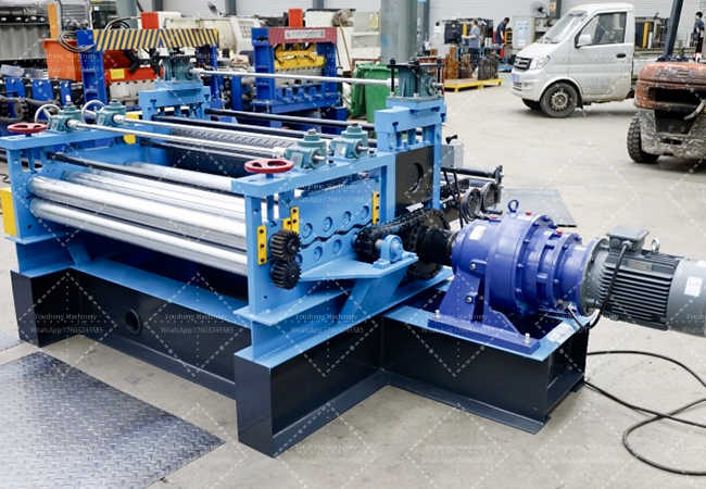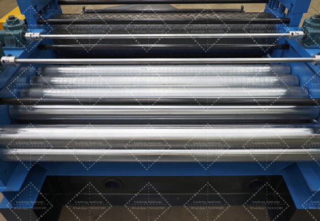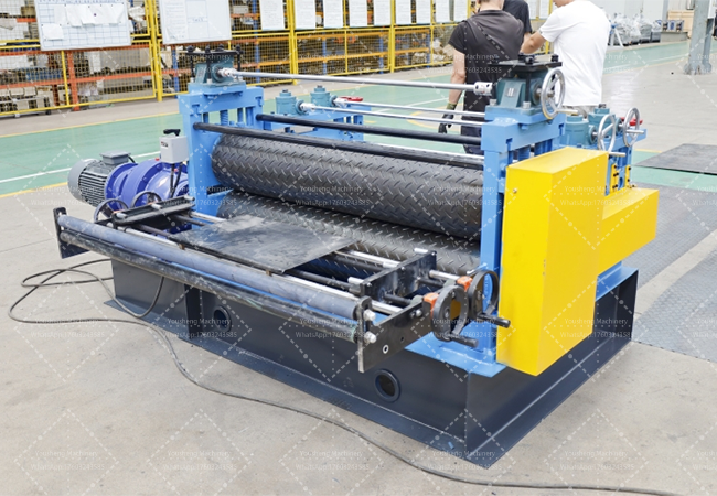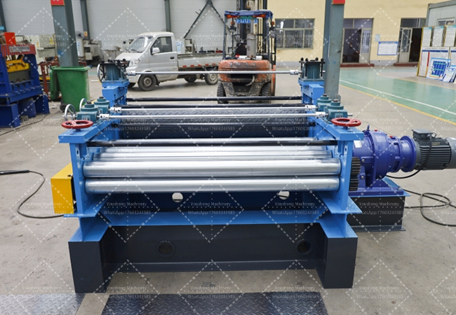 We produce metal embossing machines, there are two embossing shafts for rolling, usually can roll the plate less than 3mm, the material is aluminum plate, color steel plate, hot-dip galvanized plate, copper plate, cold rolled steel plate, stainless steel plate and so on. The boards are pre-cut and fed into the embossing machine with the finished product on the other side.