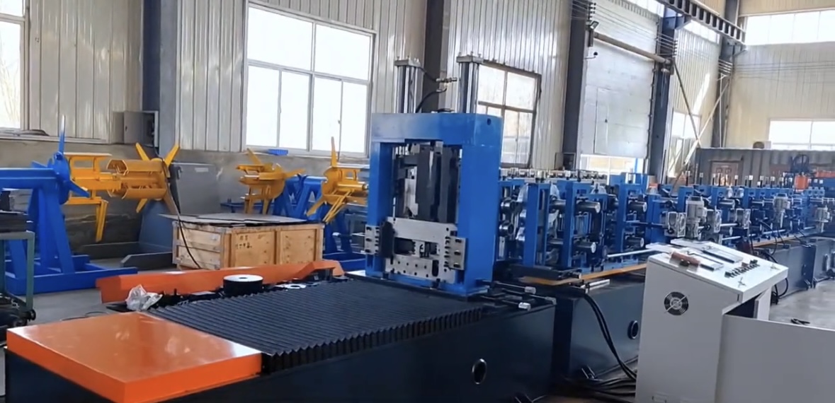 We customized a purlin forming machine with a 10-second quick changeover based on the needs of an Australian customer. Their requirement was to use a PLC program to input dimensions on an LCD touchscreen for changeover, so we developed a fully automatic purlin forming machine to meet their needs.