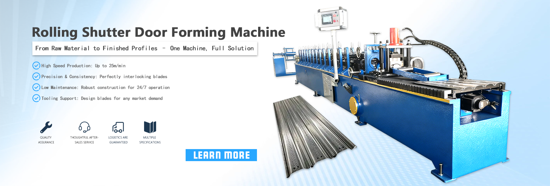 The core function of the metal rolling shutter door forming machine is to transform flat metal coils (or sheets) through an integrated “continuous rolling forming + cutting” process into finished curtain slats that can be directly assembled into rolling shutter doors.