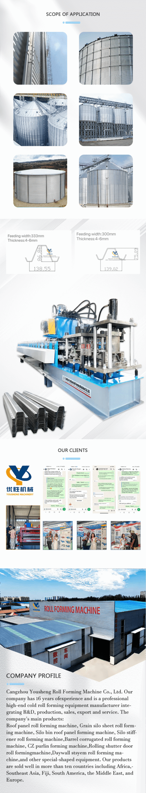 Our silo stiffener forming machine can continuously process large quantities of profiles. It uses solid materials and produces precise forming precision, ensuring a perfect connection with the silo corrugated sheeting.